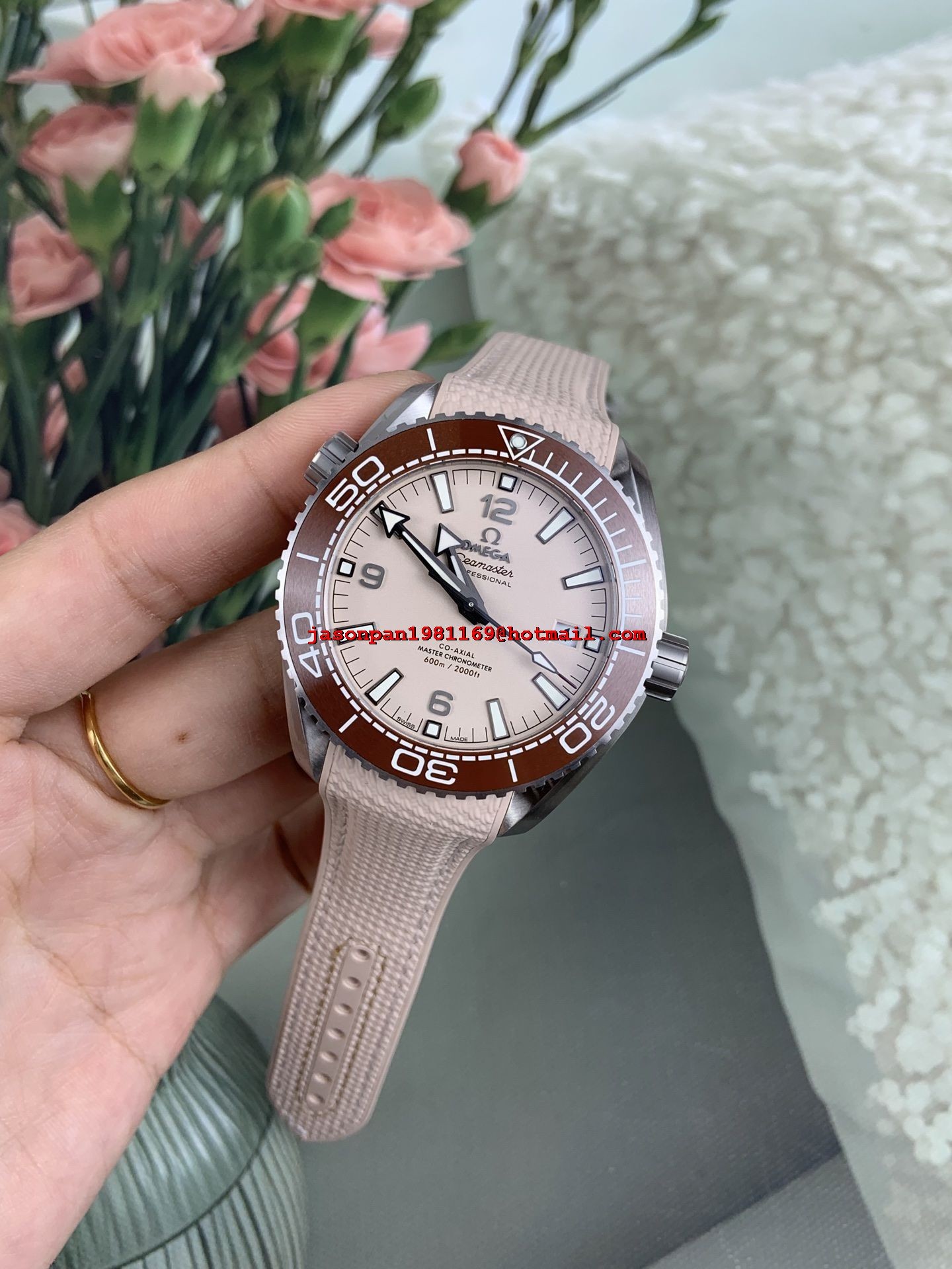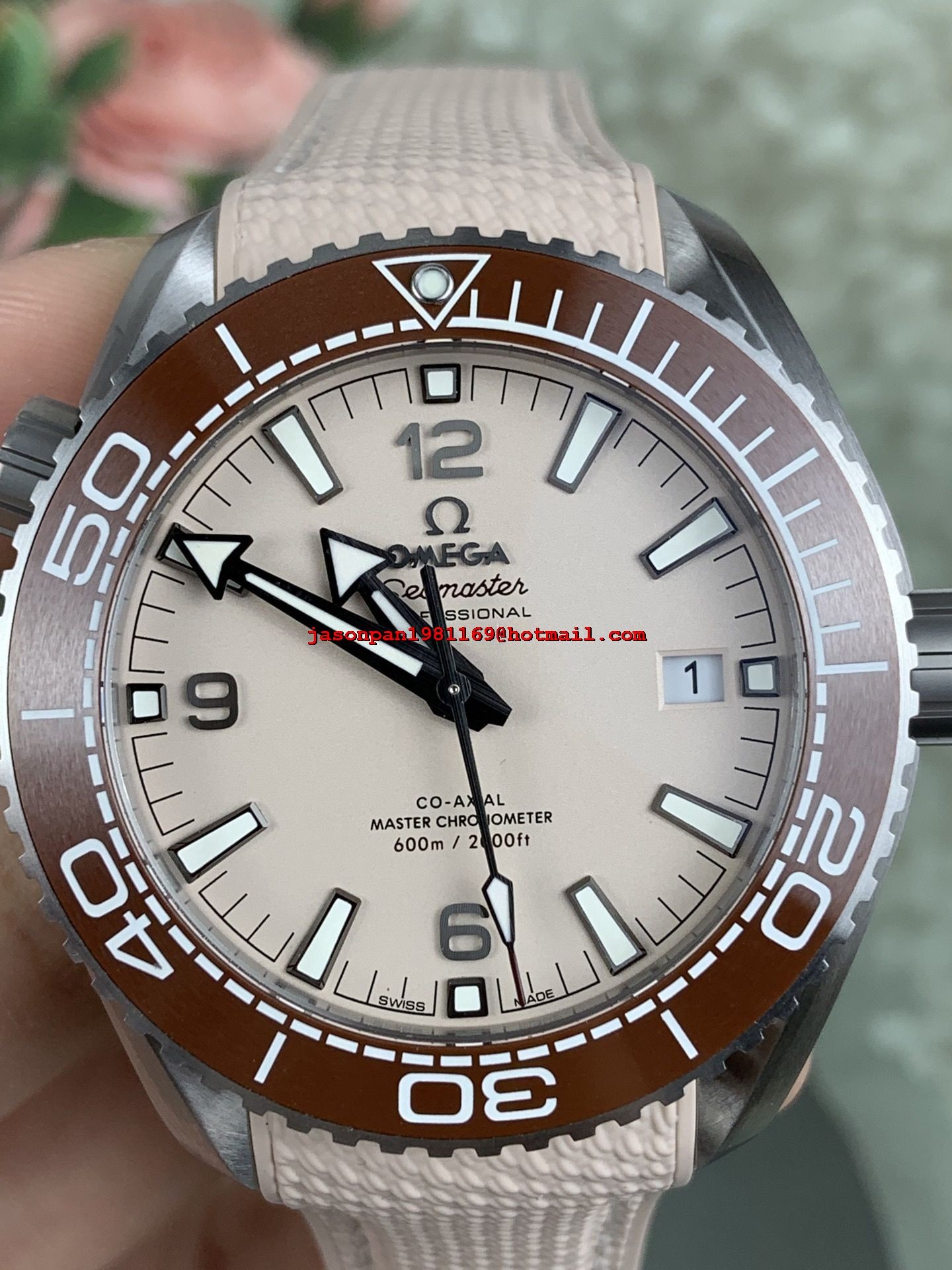 OMEGA PLANET OCEAN 43.5MM SS 1:1 BEST EDITION BROWN BEZEL SAND DIAL ON SAND RUBBER STRAP A8900 SUPER CLONE