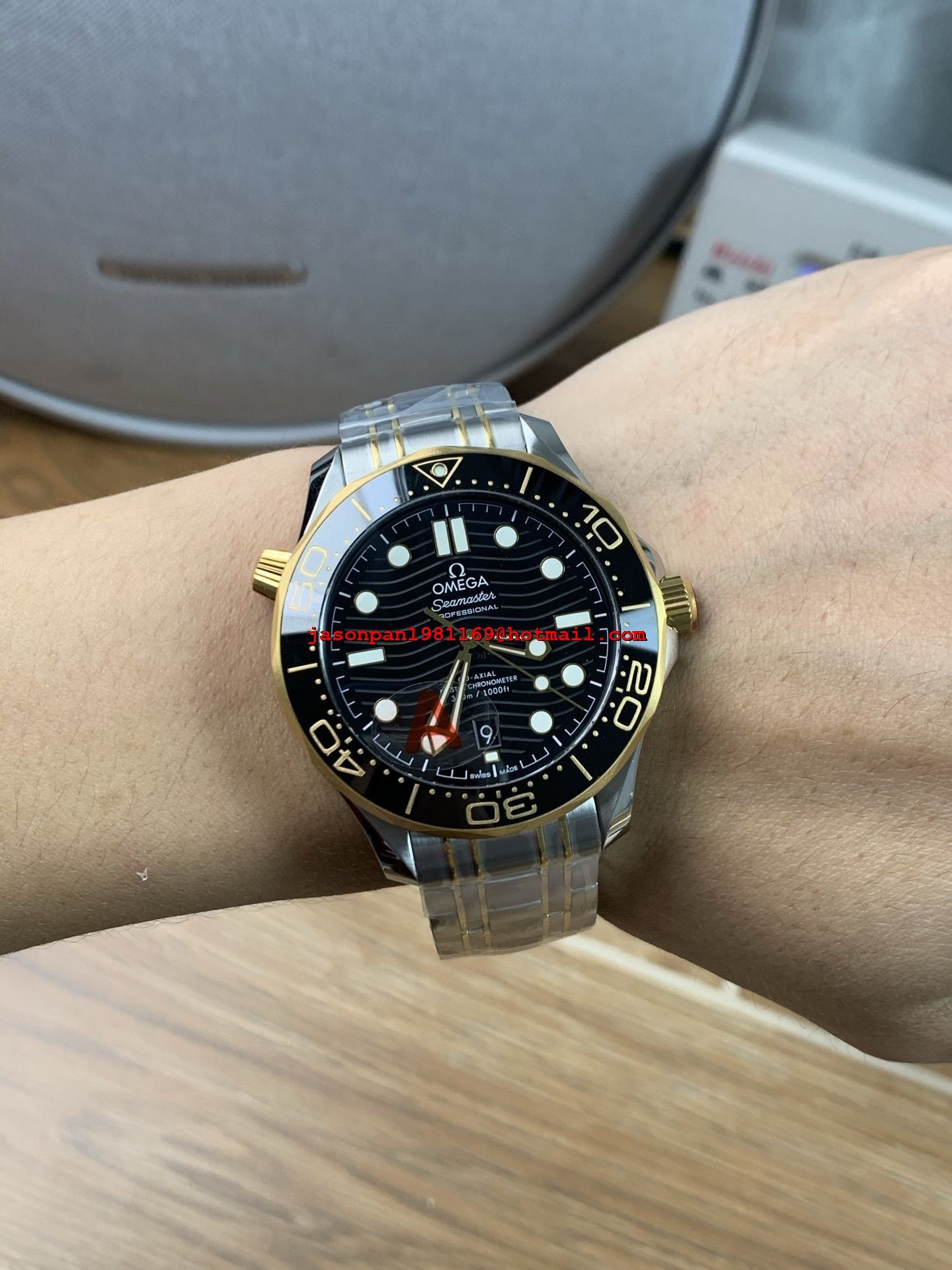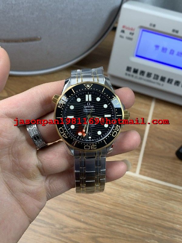 Omega SEAMASTER DIVER 300M SS/YG 1:1 BEST EDITION BLACK CERAMIC BLACK DIAL ON SS/YG BRACELET SA8800 SUPER CLONE