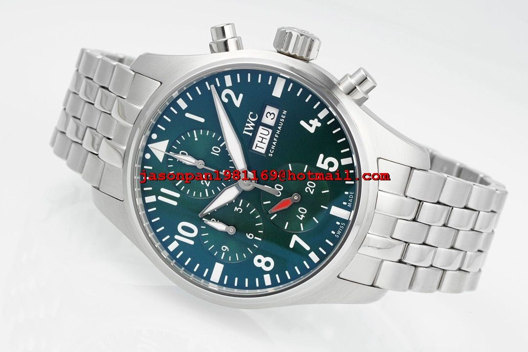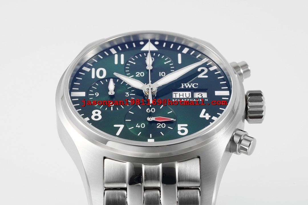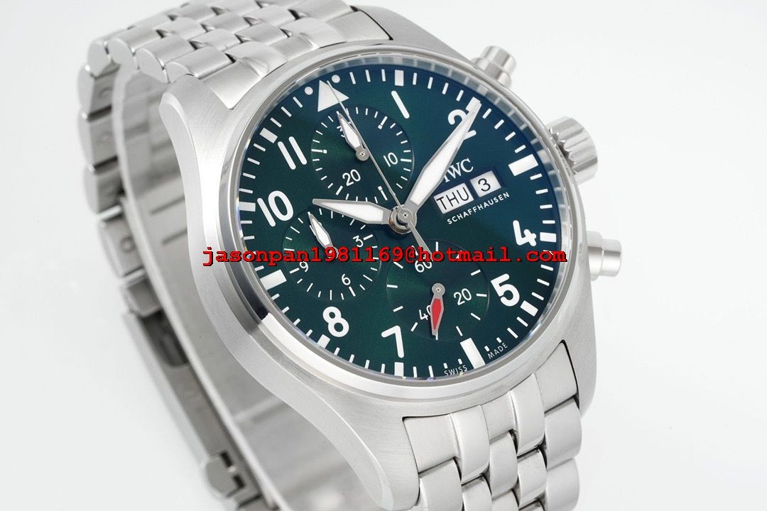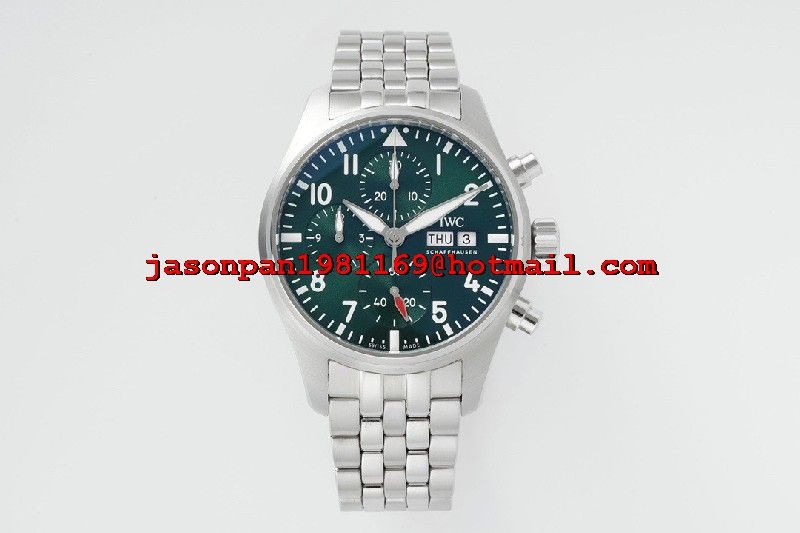 IWC PILOT CHRONO IW388104 1:1 BEST EDITION GREEN DIAL ON SS BRACELET SA69385 SUPER CLONE
