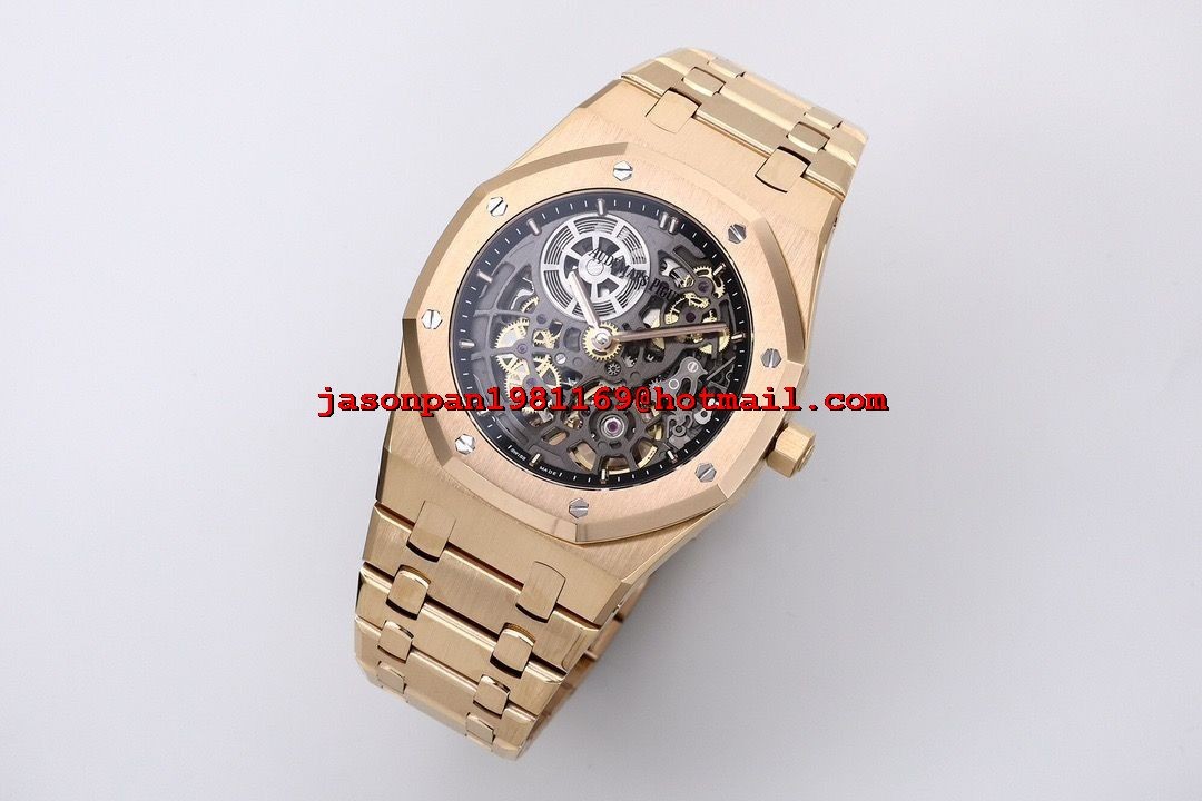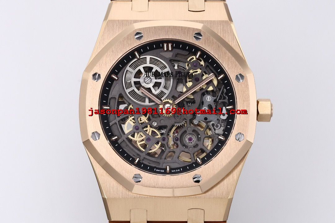AUDEMARS PIGUET ROYAL OAK OPENWORKED 16204 RG 1:1 BEST EDITION SKELETON DIAL ON RG BRACELET A7124