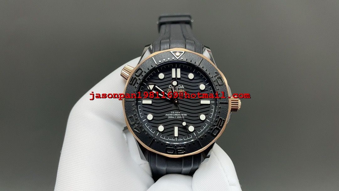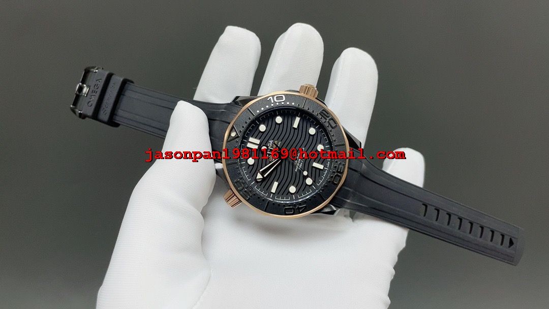 Omega SEAMASTER 300M 43.5MM BLACK CERAMIC 1:1 BEST EDITION RG BEZEL ON BLACK RUBBER STRAP A8806 SUPER CLONE