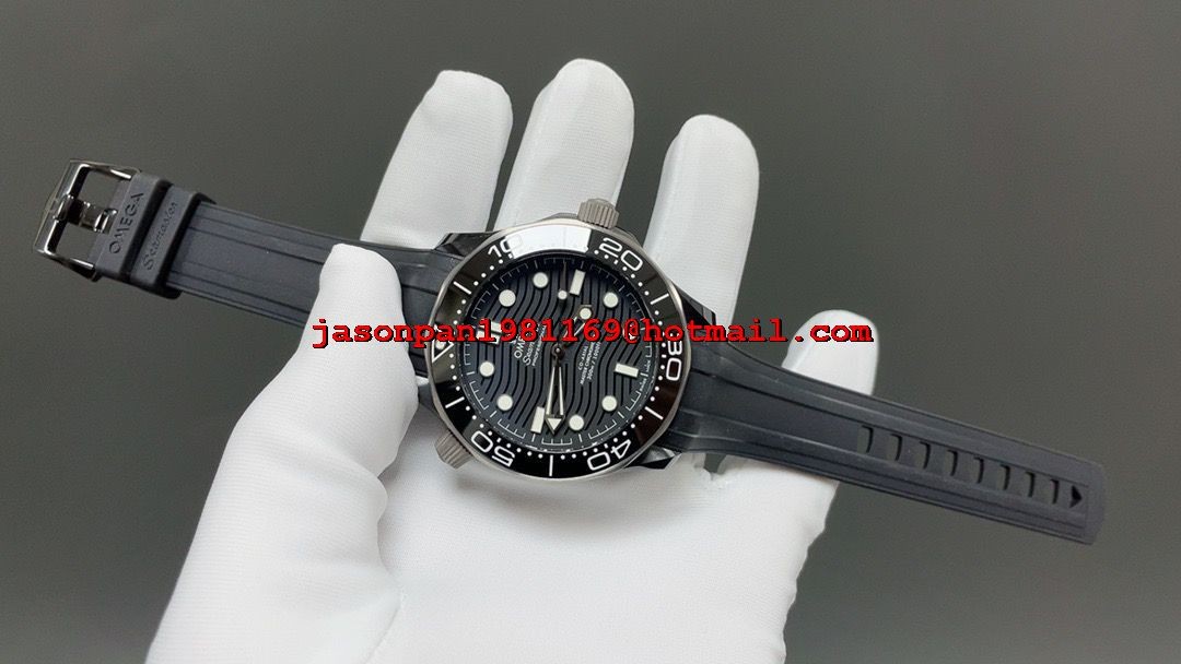Omega SEAMASTER 300M 43.5MM BLACK CERAMIC 1:1 BEST EDITION TITANIUM BEZEL ON BLACK RUBBER STRAP A8806 SUPER CLONE