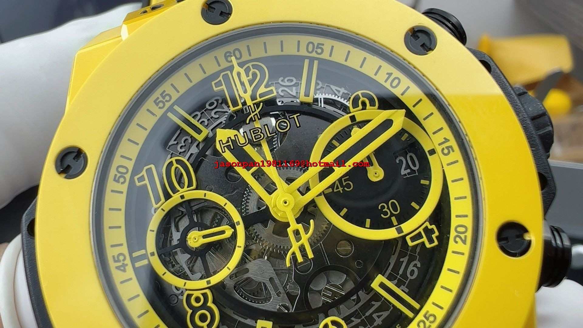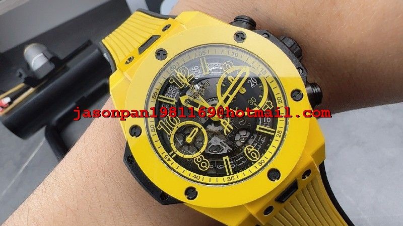 Hublot BIG BANG UNICO 42MM YELLOW CERAMIC 1:1 BEST EDITION SKELETON DIAL ON YELLOW RUBBER STRAP A1280
