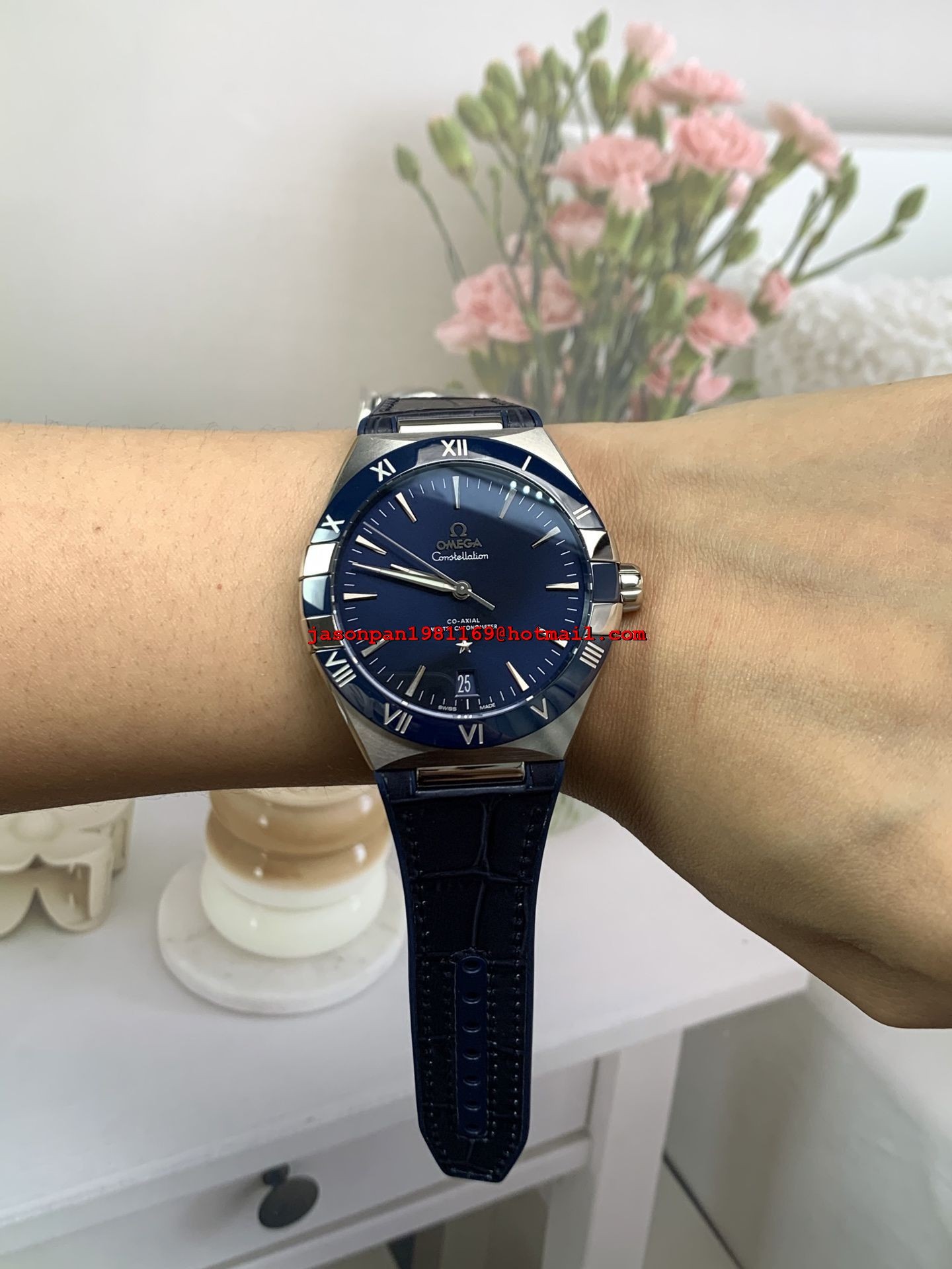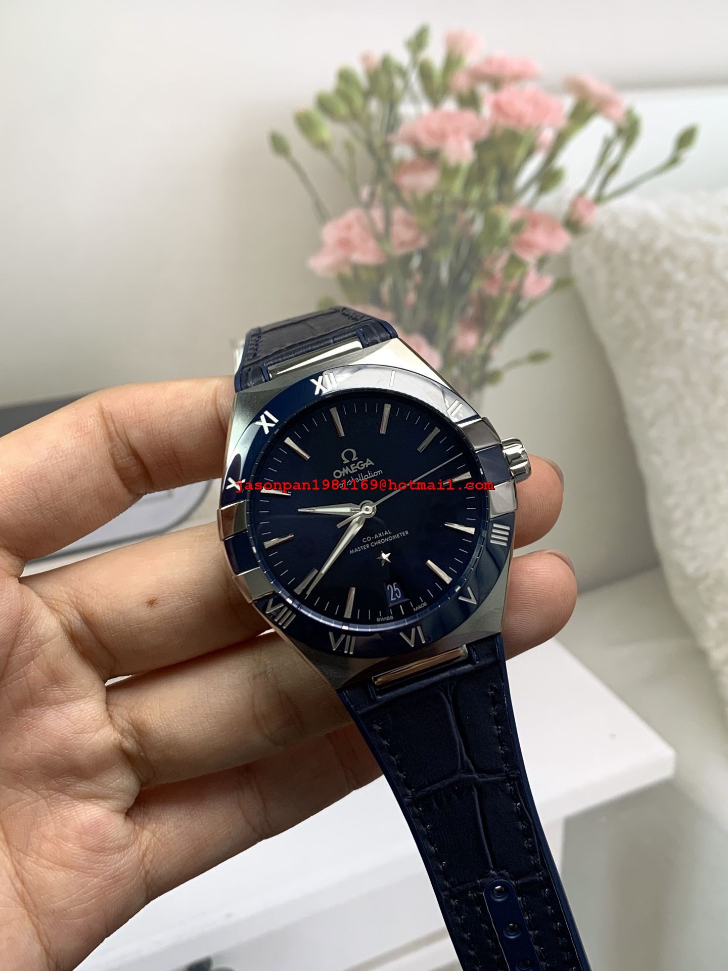 OMEGA CONSTELLATION BLUE CERAMIC SS 1:1 BEST EDITION BLUE DIAL ON BLUE GUMMY STRAP A8900 SUPER CLONE