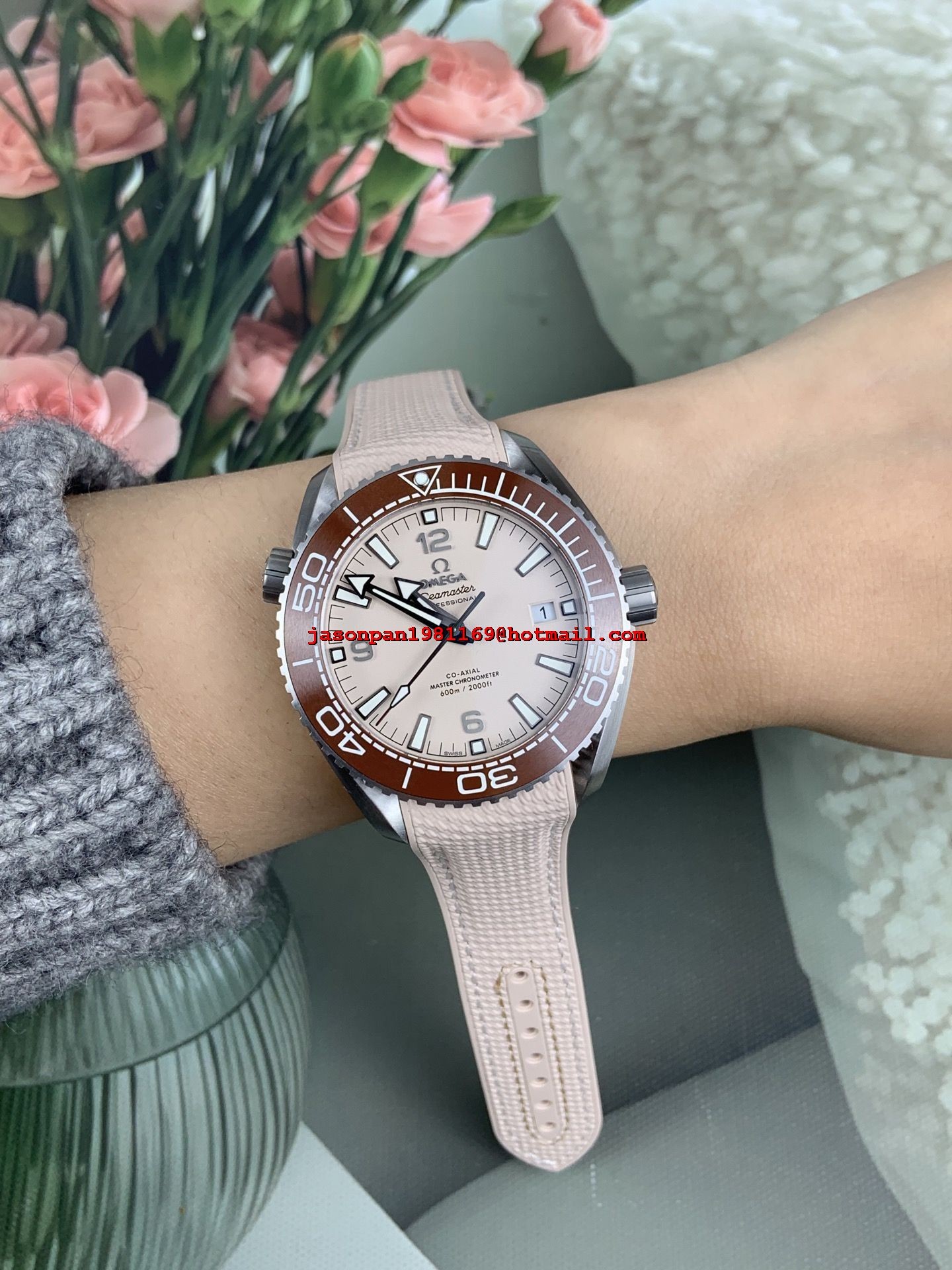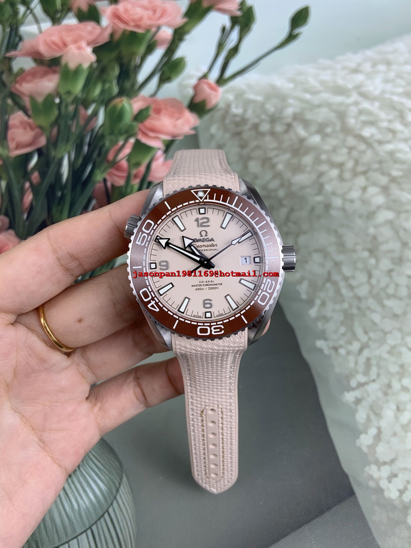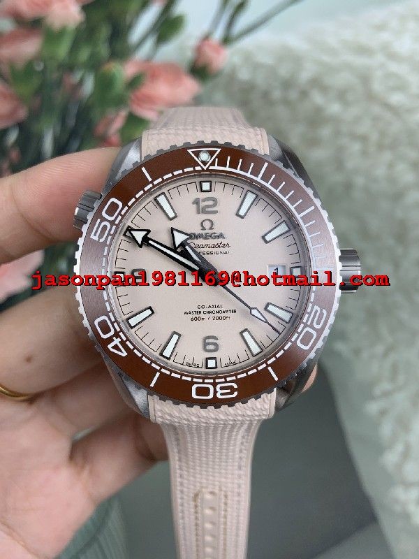 OMEGA PLANET OCEAN 43.5MM SS 1:1 BEST EDITION BROWN BEZEL SAND DIAL ON SAND RUBBER STRAP A8900 SUPER CLONE