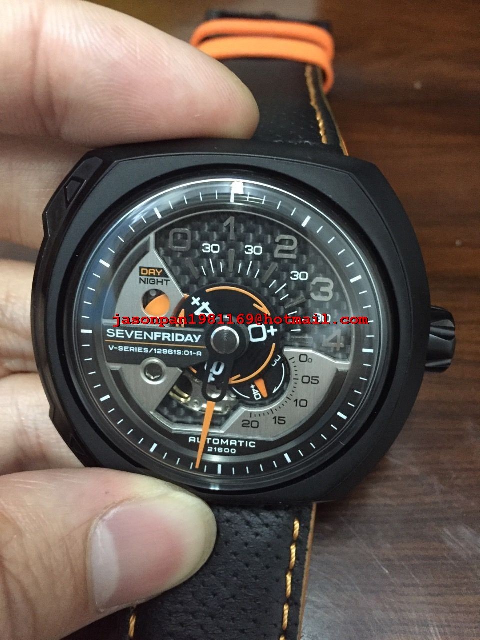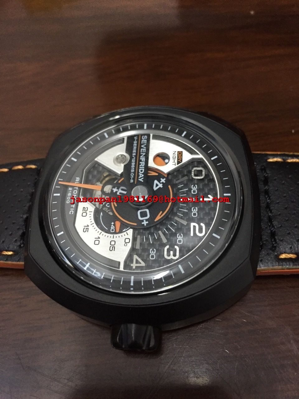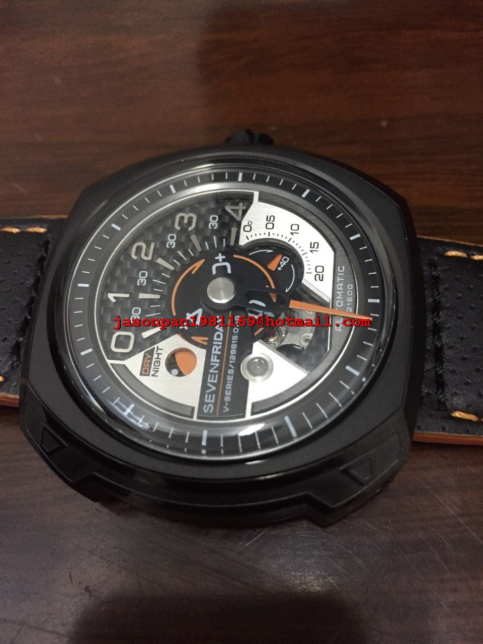 SevenFriday Best Edition Black/Silver Dial Orange Hand on Black Leather Strap Miyota 82S7