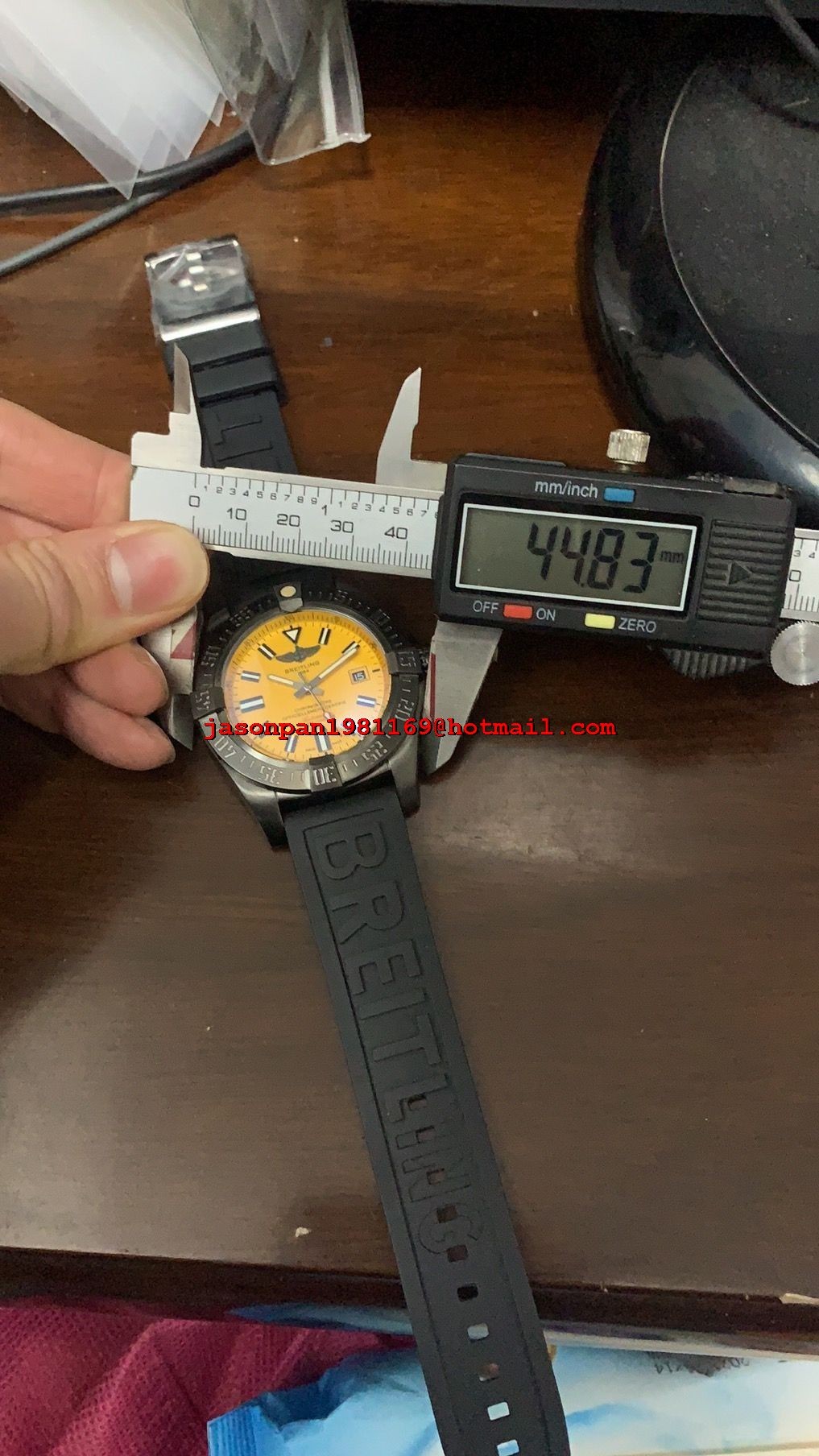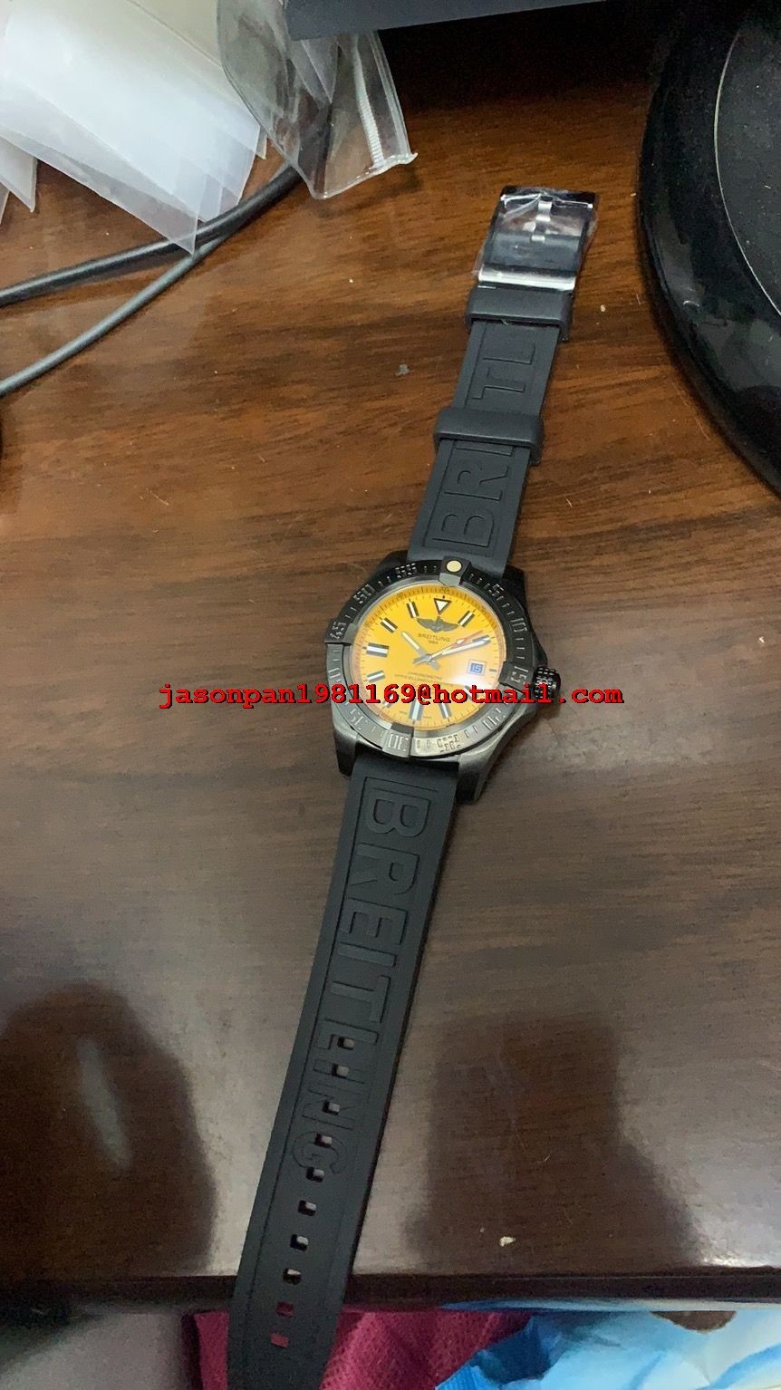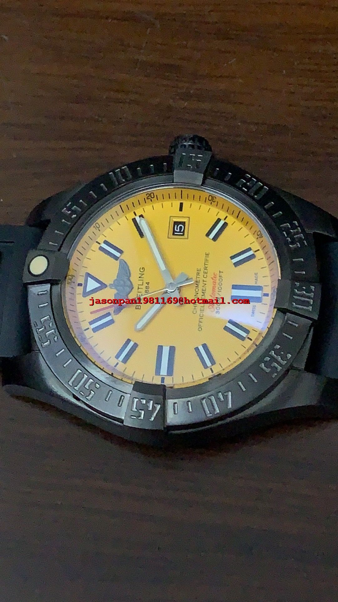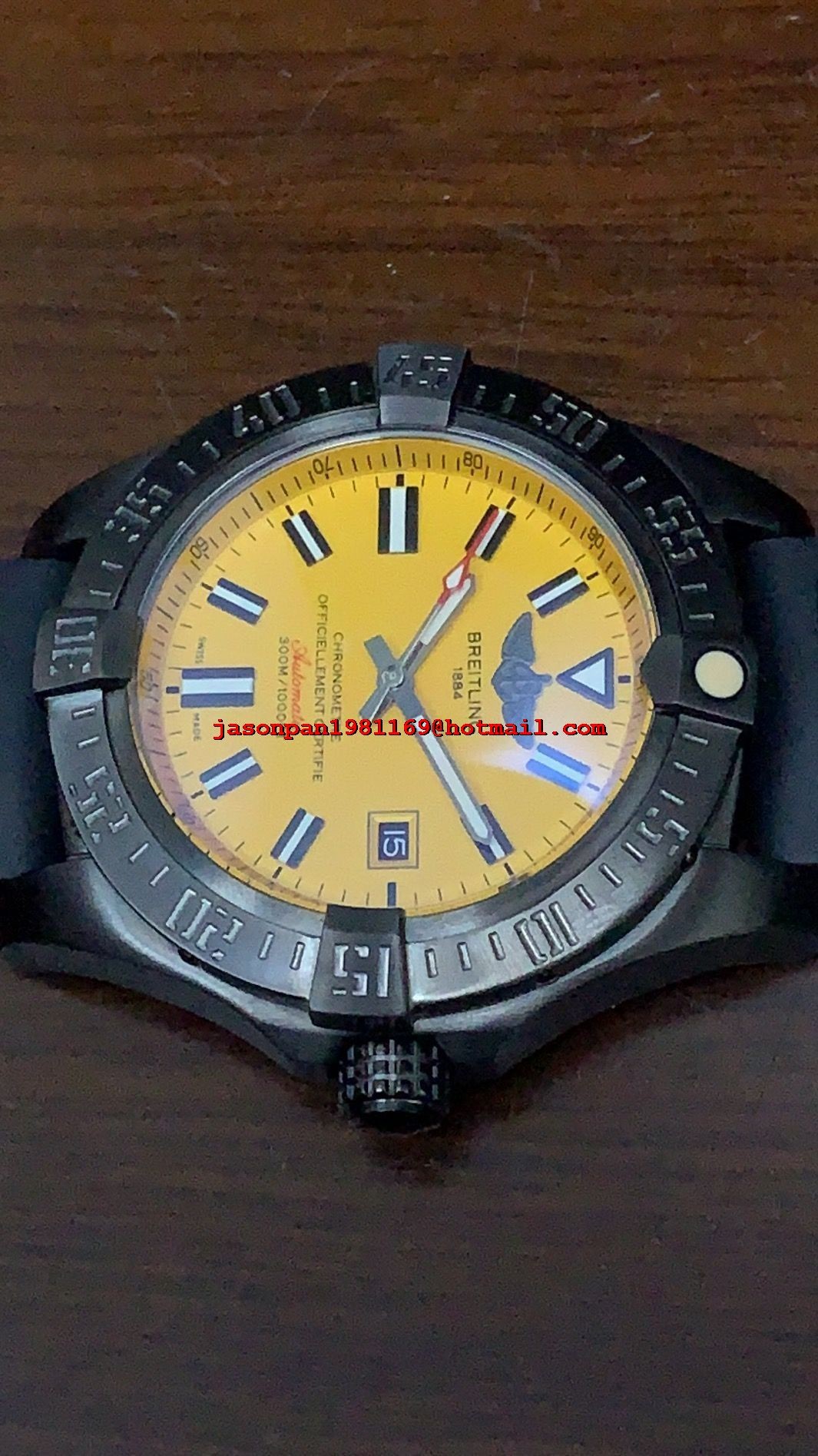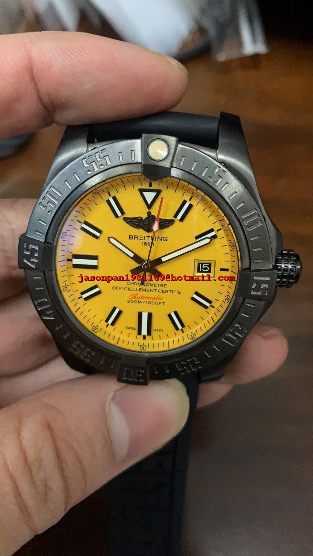 Breitling AVENGER 44MM DLC CASE Yellow DIAL ON BLACK RUBBER STRAP MIYOTA 8215