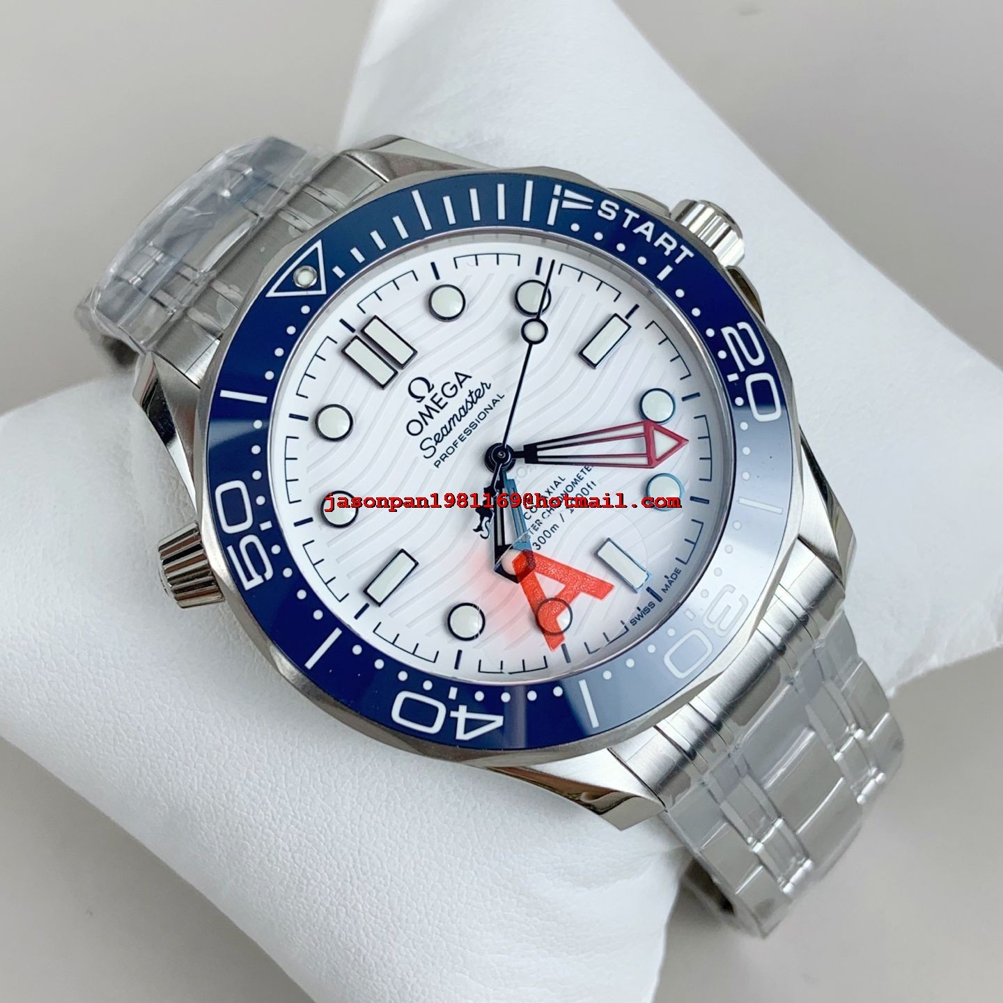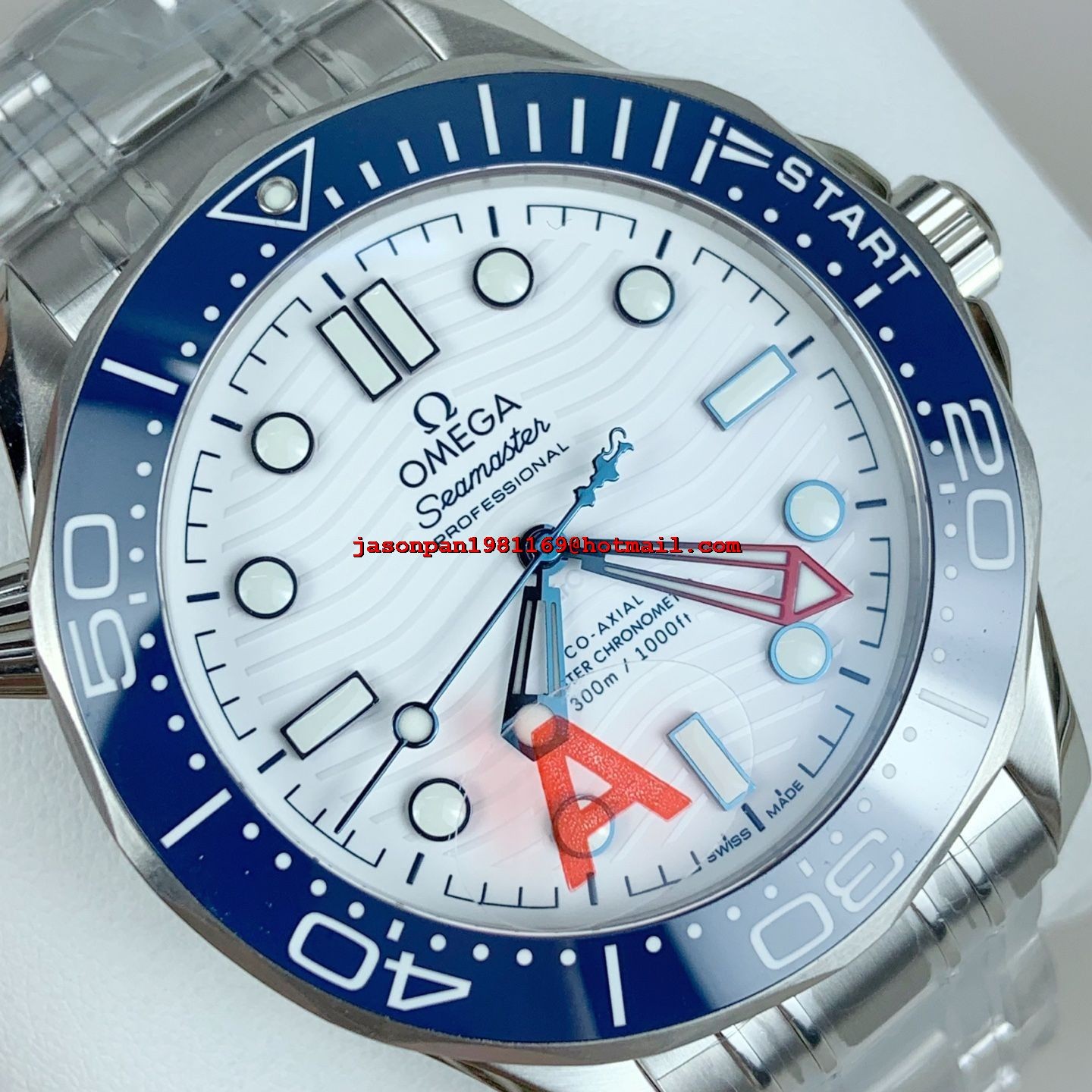 Omega SEAMASTER DIVER 300M 1:1 BEST EDITION BLUE CERAMIC WHITE DIAL ON SS BRACELET SA8800 SUPER CLONE
